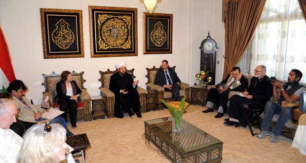 Durante la reunión, el gran Muftí dijo que “Occidente tiene que despertarse de su profundo sueño y silencio hacia la guerra terrorista librada contra el pueblo, la civilización y la solemne historia de Siria”.