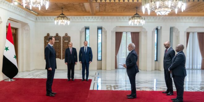 Damasco, 23 nov (SANA) El presidente Bashar Al-Assad, aceptó hoy las credenciales de Ashraf Youssef Suleiman, el nuevo embajador extraordinario y plenipotenciario del Estado de Sudáfrica en la República Árabe Siria.
