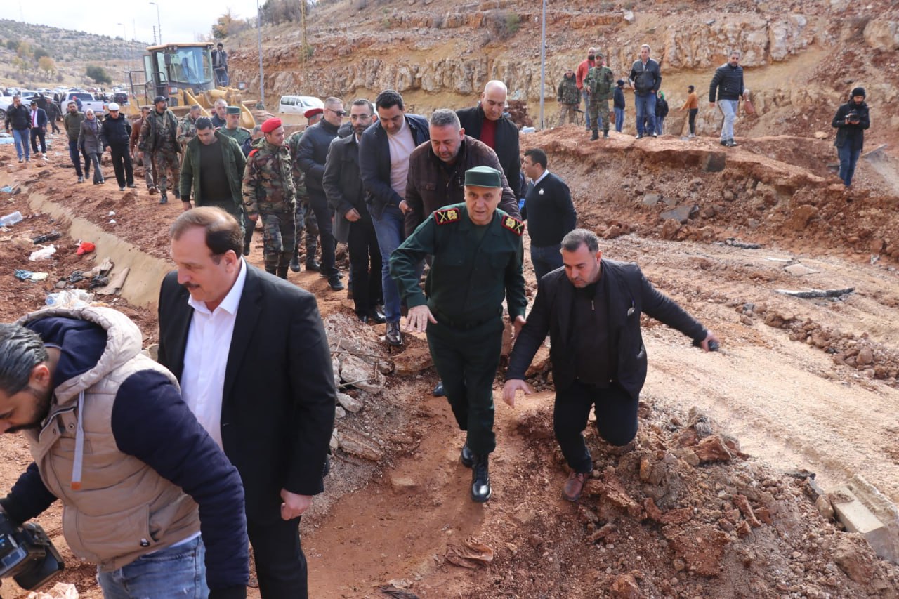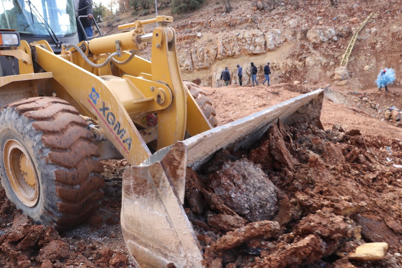La Gobernación de Damasco-campo movilizó vehículos pesados para reparar la carretera y reabrirla ante el movimiento de vehículos.