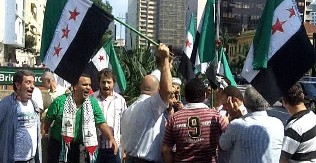 Sirios celebran en la ciudad de Sao Paulo en Brasil, la caída del régimen de Bashar Al-Assad.