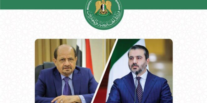 Damasco, 31 dic (SANA) El Ministro de Exteriores, Asaad Al-Shaibani, y su homólogo yemení, Shaye Mohsen Al-Zindani, sostuvieron una conversación telefónica en la que los dos ministros repasaron las formas de desarrollar las relaciones diplomáticas entre los dos países hermanos.
