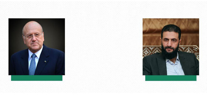 Damasco, 4 ene (SANA) El líder de la nueva autoridad en Siria, Ahmed Al-Sharaa, y el primer ministro libanés Najib Mikati, sostuvieron una conversación vía telefónica.
