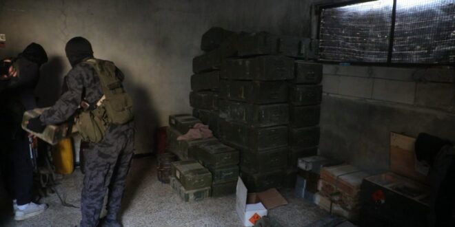 Imágenes| El Departamento de Seguridad General confisca un almacén de municiones en el barrio de Al-Zahraa en la ciudad de Homs durante una operación integral lanzada en los barrios de la ciudad para buscar a remanentes de la milicia Assad.