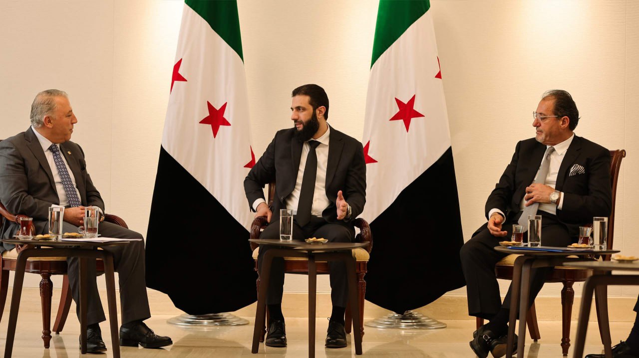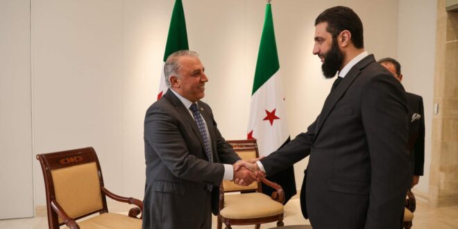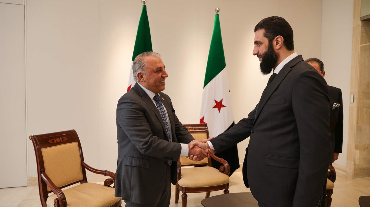 11/01/2025 Damasco, 11 ene (SANA) El líder de la nueva administración siria, Ahmed Al-Sharaa, se reunió con un grupo de industriales sirio en el Palacio del Pueblo en Damasco. 2025-01-11 Esraa