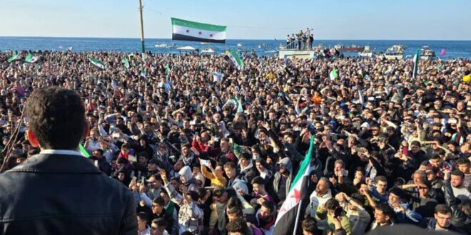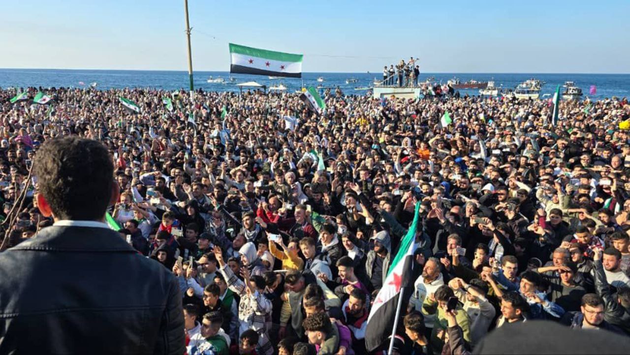 Banias, 11 ene (SANA) Con motivo de la victoria de la Revolución Siria y el derrocamiento del régimen de Bashar Al-Assad, miles de residentes de la ciudad costera de Banias, se concentraron para expresar su alegría por el triunfo de la Revolución Siria.