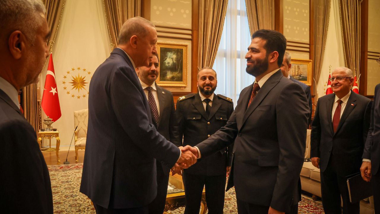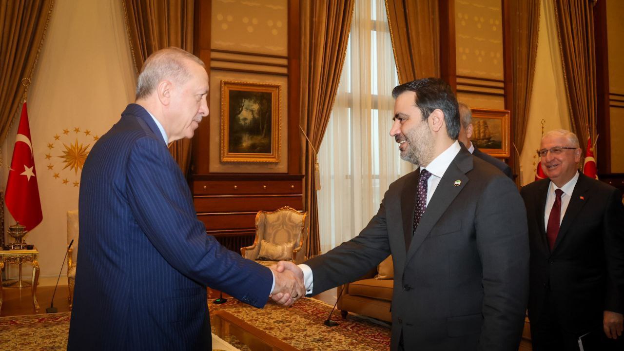 Ankara, 16 ene (SANA) En el complejo presidencial en la capital Ankara, el presidente turco, Recep Tayyip Erdogan, y el ministro de Asuntos Exteriores, Hakan Fidan, recibieron al canciller sirio Asaad Al-Shaibani, acompañado por el ministro de Defensa, el mayor general Murhaf Abu Qasra y el Jefe de Inteligencia General, Anas Khattab.