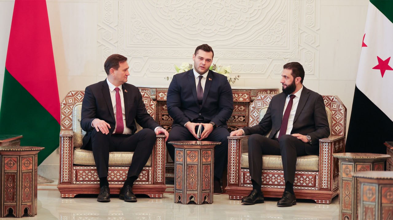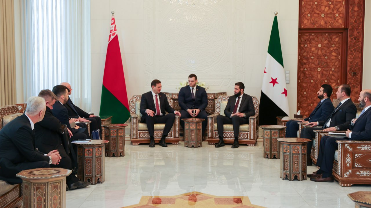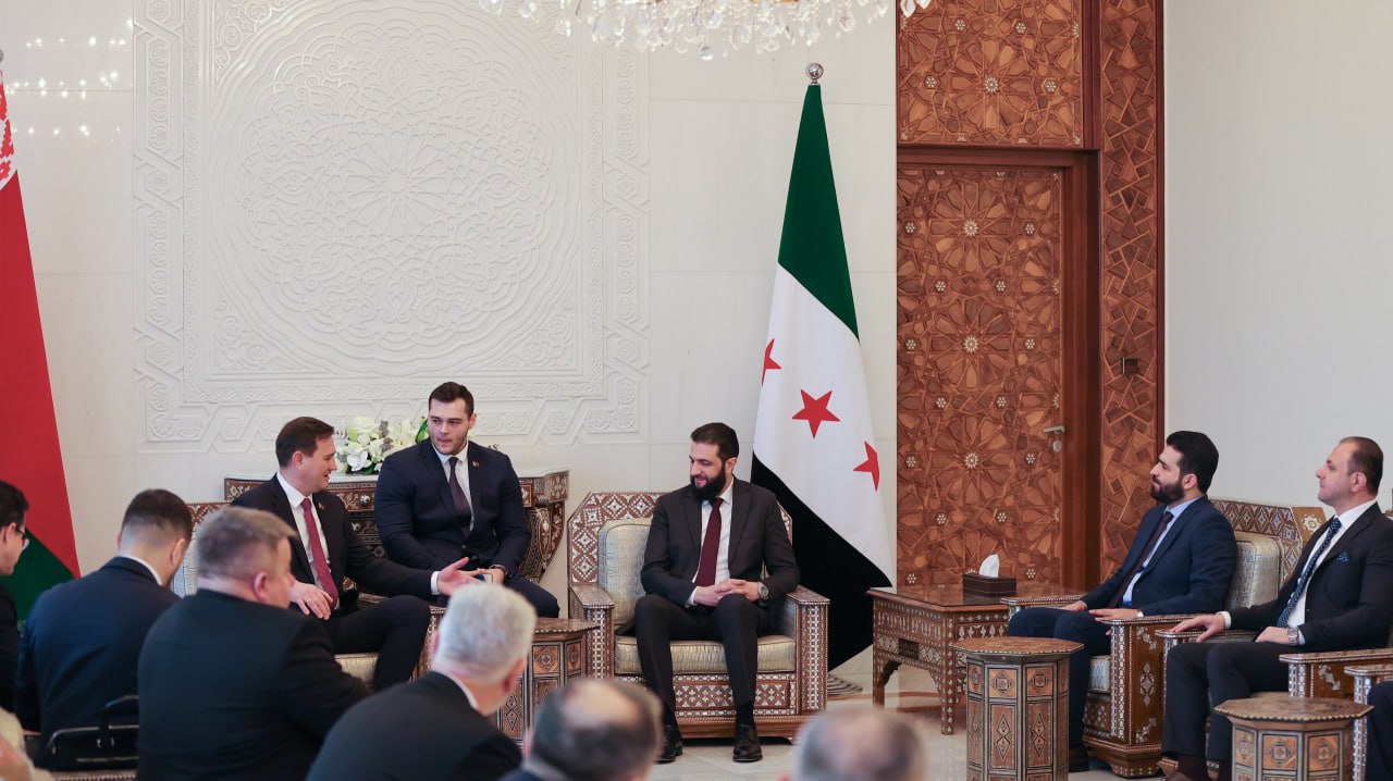 Damasco, 23 ene (SANA) El jefe de la nueva autoridad siria, Ahmad Al-Sharaa, y el jefe del Servicio General de Inteligencia, Anas Khattab, recibieron hoy a una delegación de la República de Bielorrusia, encabezada por el ministro de Asuntos Exteriores de Bielorrusia, Maxim Vladimirovich Rzhinkov.