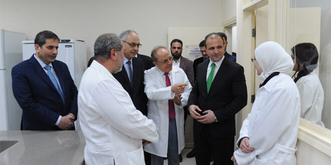 Damasco, 26 ene (SANA) El ministro de Salud en funciones, Maher Al-Sharaa, y el ministro de Educación Superior e Investigación Científica del gobierno interino, Abdul-Moneim Abdul-Hafez, visitaron el Centro de Investigación y Tratamiento Biológico en Damasco.