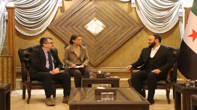 Alepo, 26 ene (SANA) El gobernador de Alepo, Azzam Al-Gharib, y el director de Asuntos Políticos en Alepo, Saad Naasan, recibieron al embajador de Italia en Siria, Stefano Ravagnan, y la delegación acompañante.