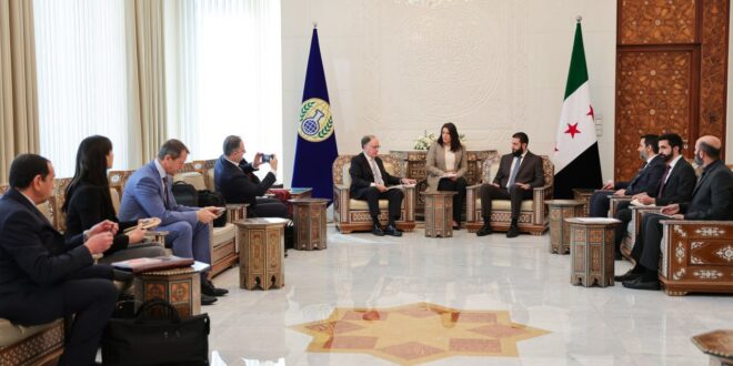 Damasco, 8 feb (SANA) El presidente de la República Árabe Siria, Ahmed Al-Shara, y el ministro de Asuntos Exteriores, Asaad Al-Shaibani, recibieron hoy a una delegación de la Organización para la Prohibición de las Armas Químicas (OPAQ), encabezada por el director general Fernando González.