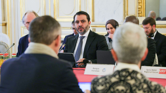 Asimismo, el canciller Al-Shaibani participó en una reunión para renovar la coordinación entre donantes internacionales.