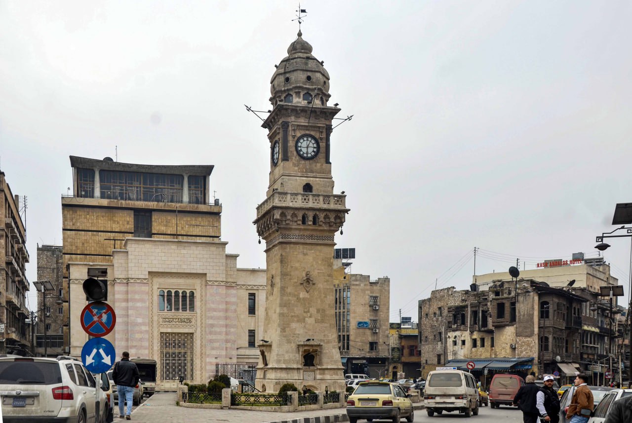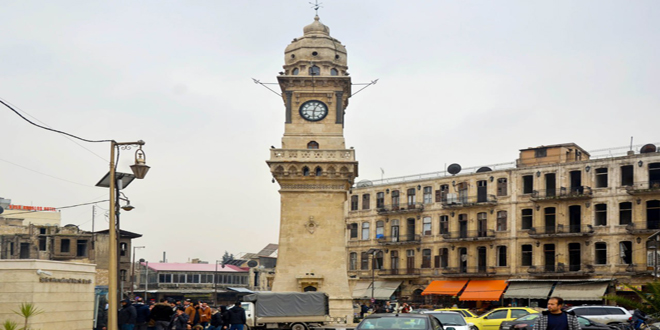 Alepo, 20 feb (SANA) La torre del reloj de Bab Al-Faraj es uno de los principales lugares de interés en la ciudad de Alepo.