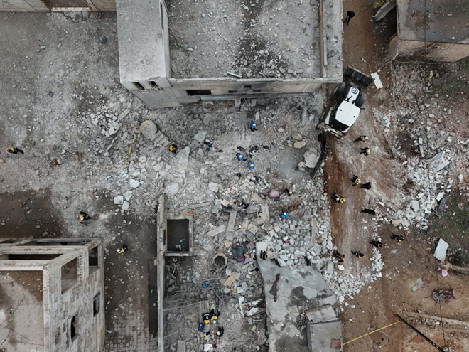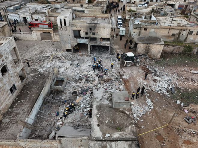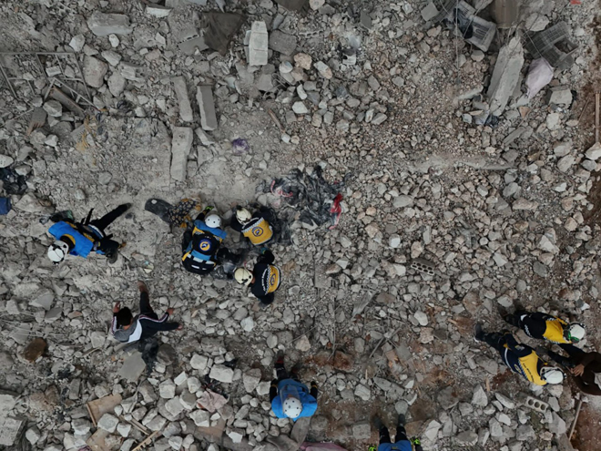 La Defensa Civil Siria explicó en su canal de Telegram, que sus equipos continúan las operaciones de búsqueda y rescate en el lugar en medio de la enorme destrucción causada por la explosión.