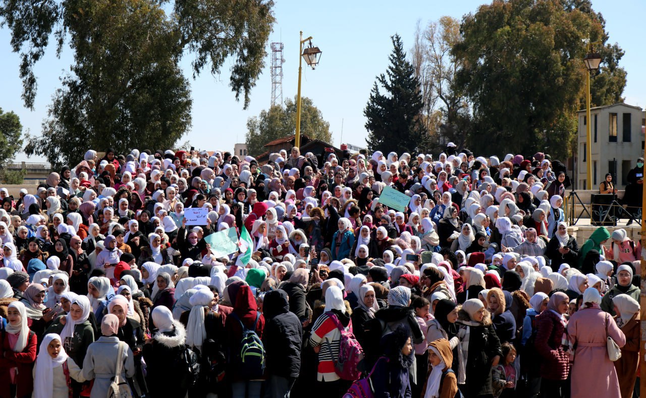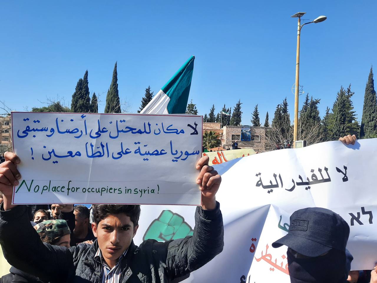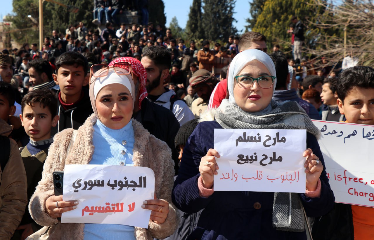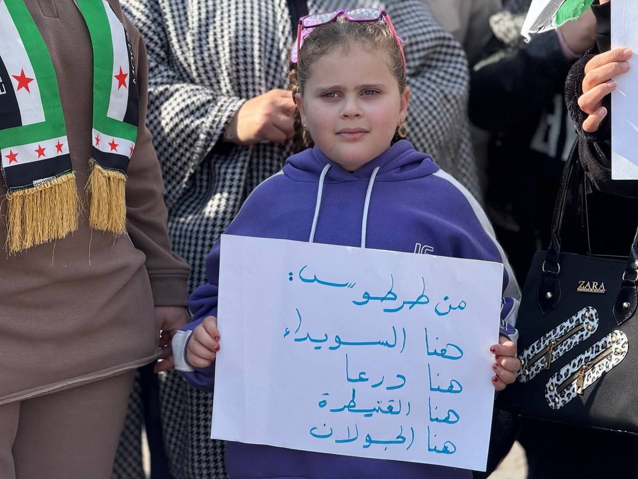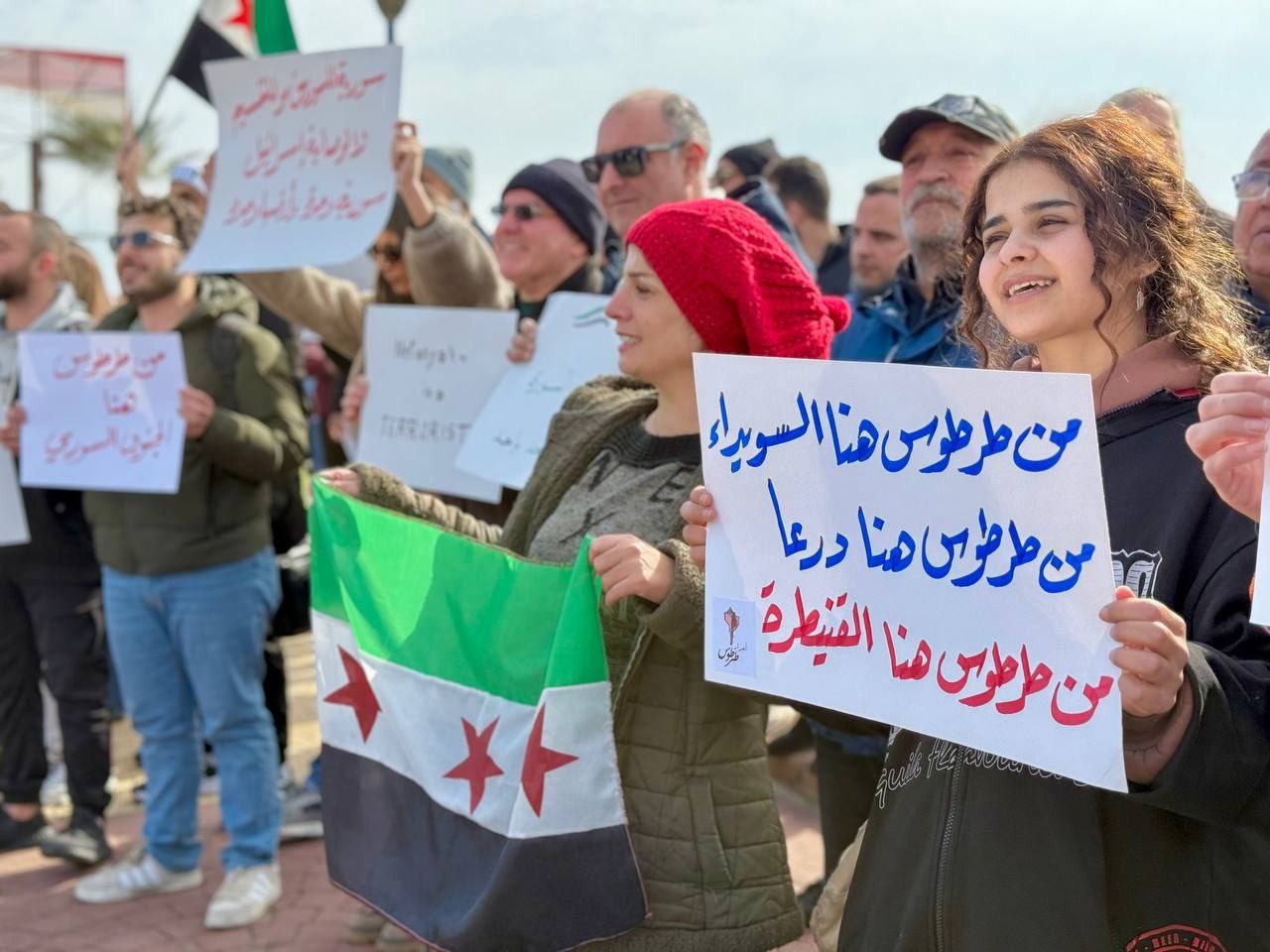 “Deraa, Quneitra y Sweida son una línea roja”, gritó la gente congregada.