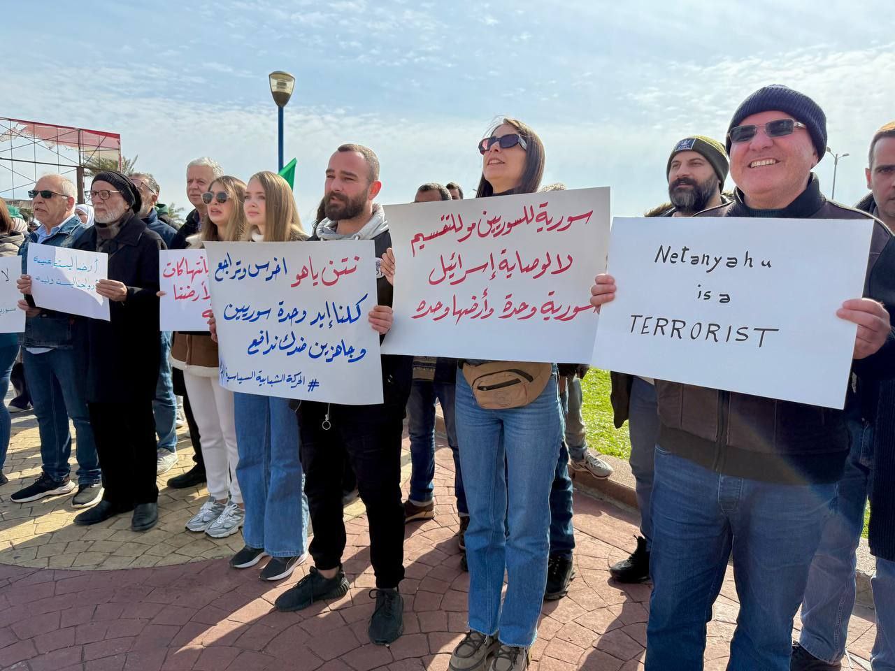 Los protagonistas del acto levantaron pancartas en algunas de las mismas señalaron que “Siria es tierra de paz pero Israel quiere la guerra”, mientras que en otras resaltaron que “Siria es para los sirios y no hay lugar para los ocupantes en nuestro país”.