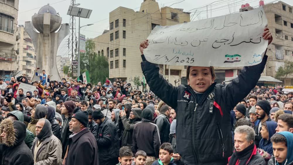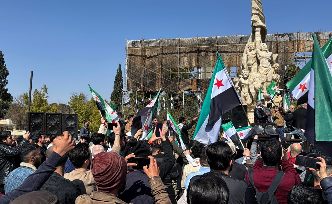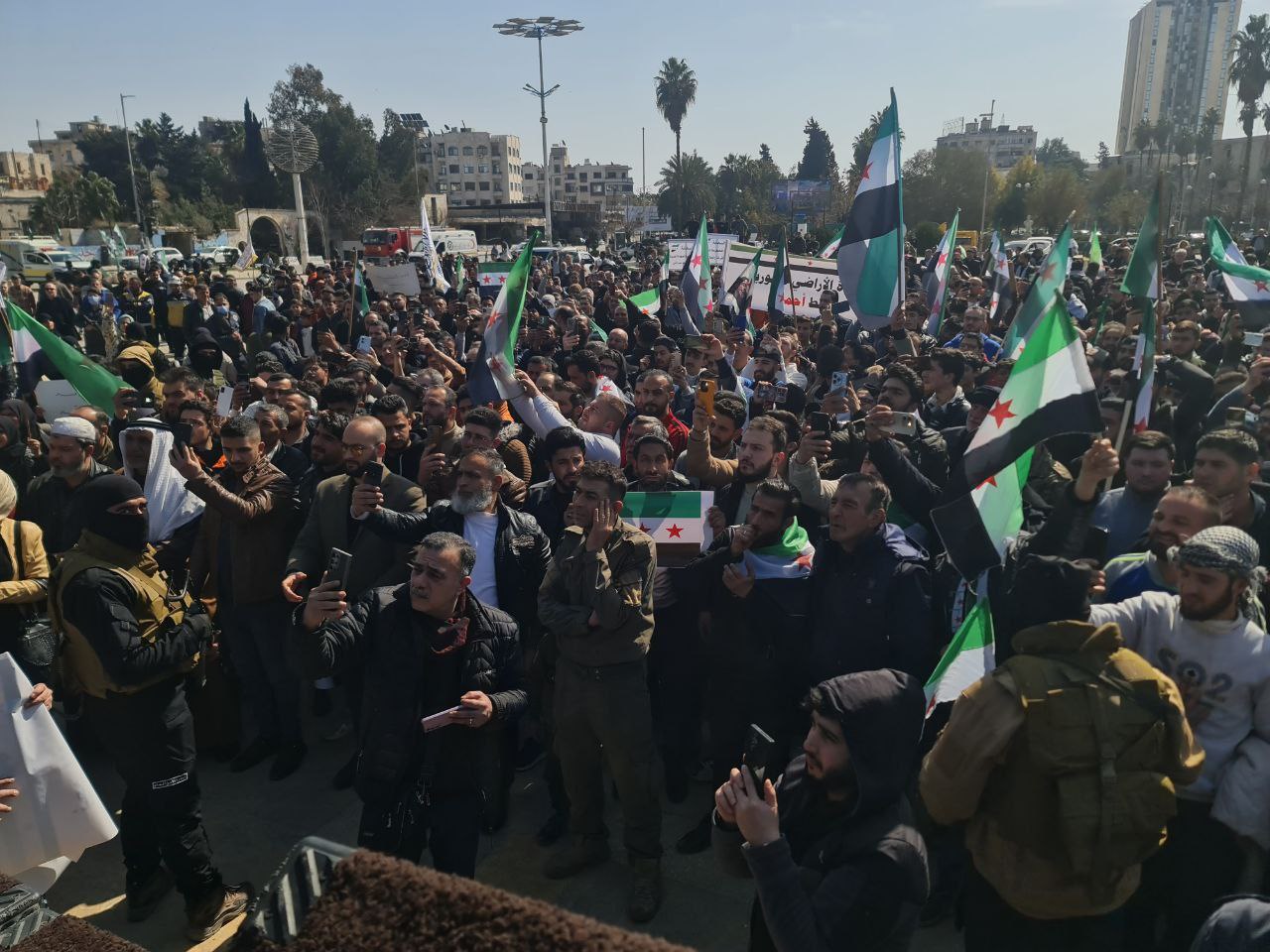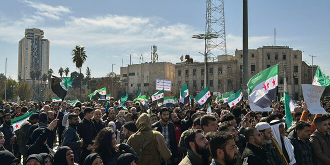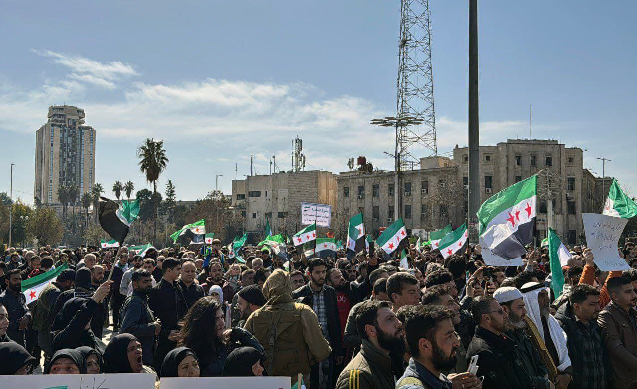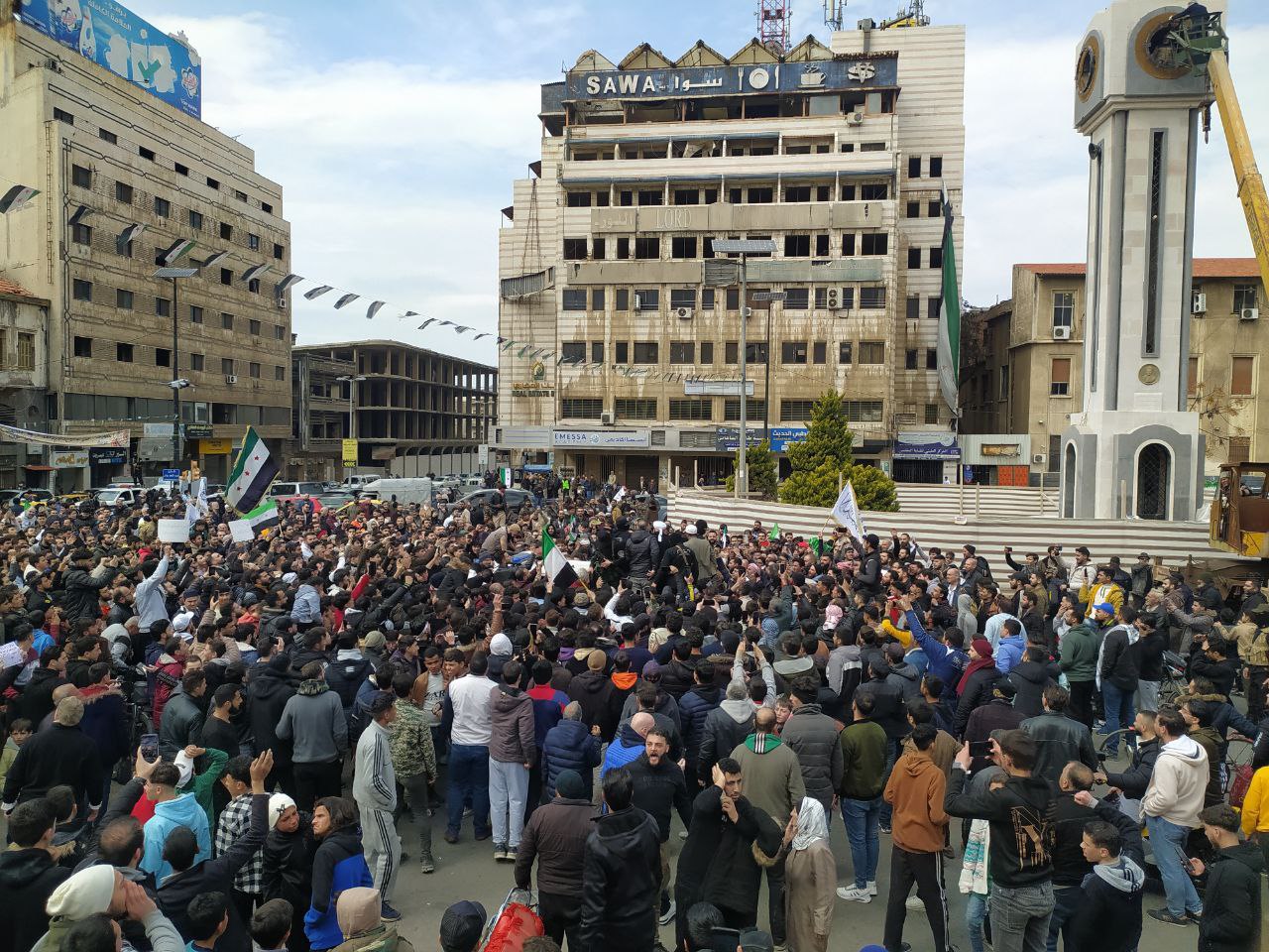 Alepo: Una concentración popular en la plaza Saadallah al-Jabri, en Alepo, en apoyo a los esfuerzos del Estado sirio para combatir los remanentes de las milicias de Assad y para afirmar la unidad del pueblo sirio en la lucha contra los armados ilegales.