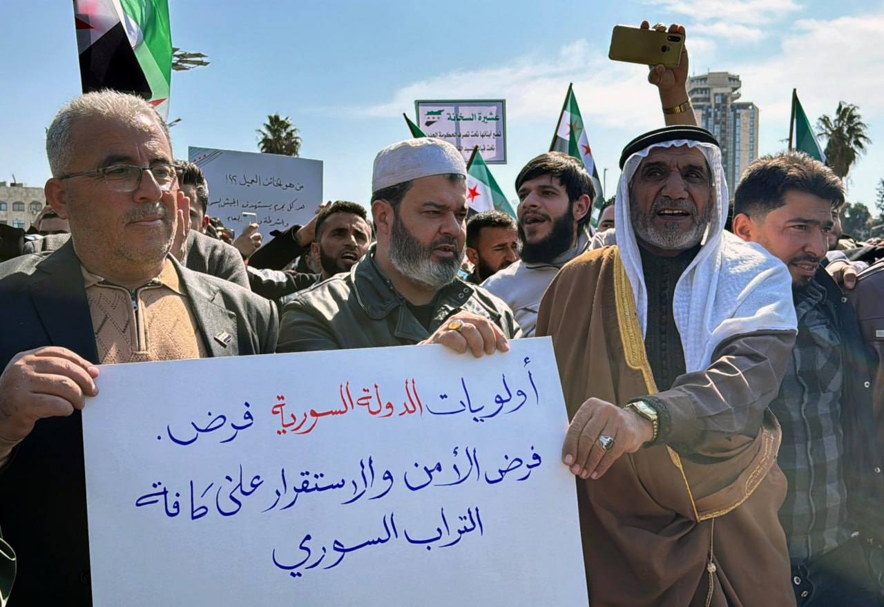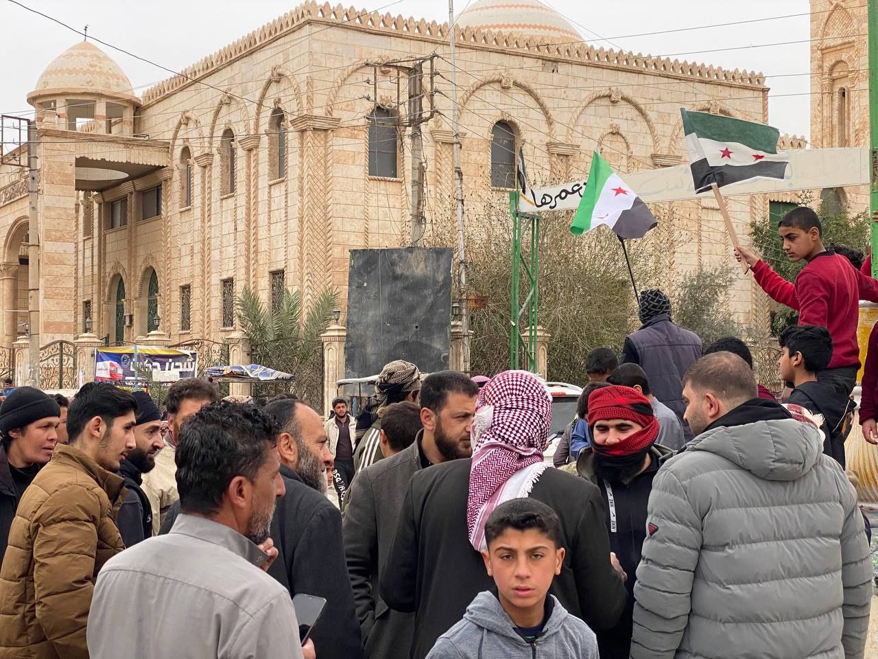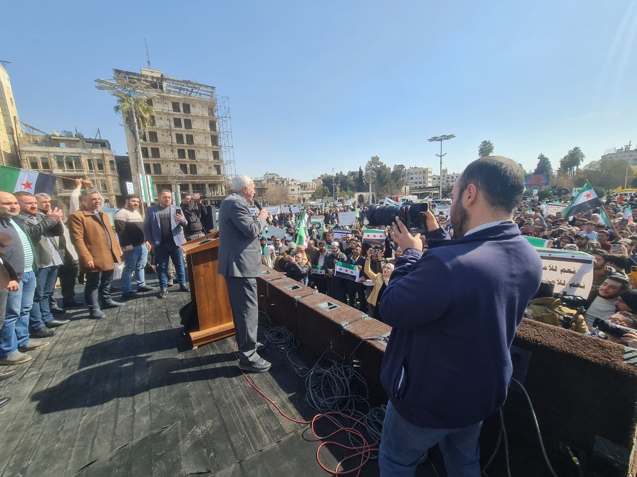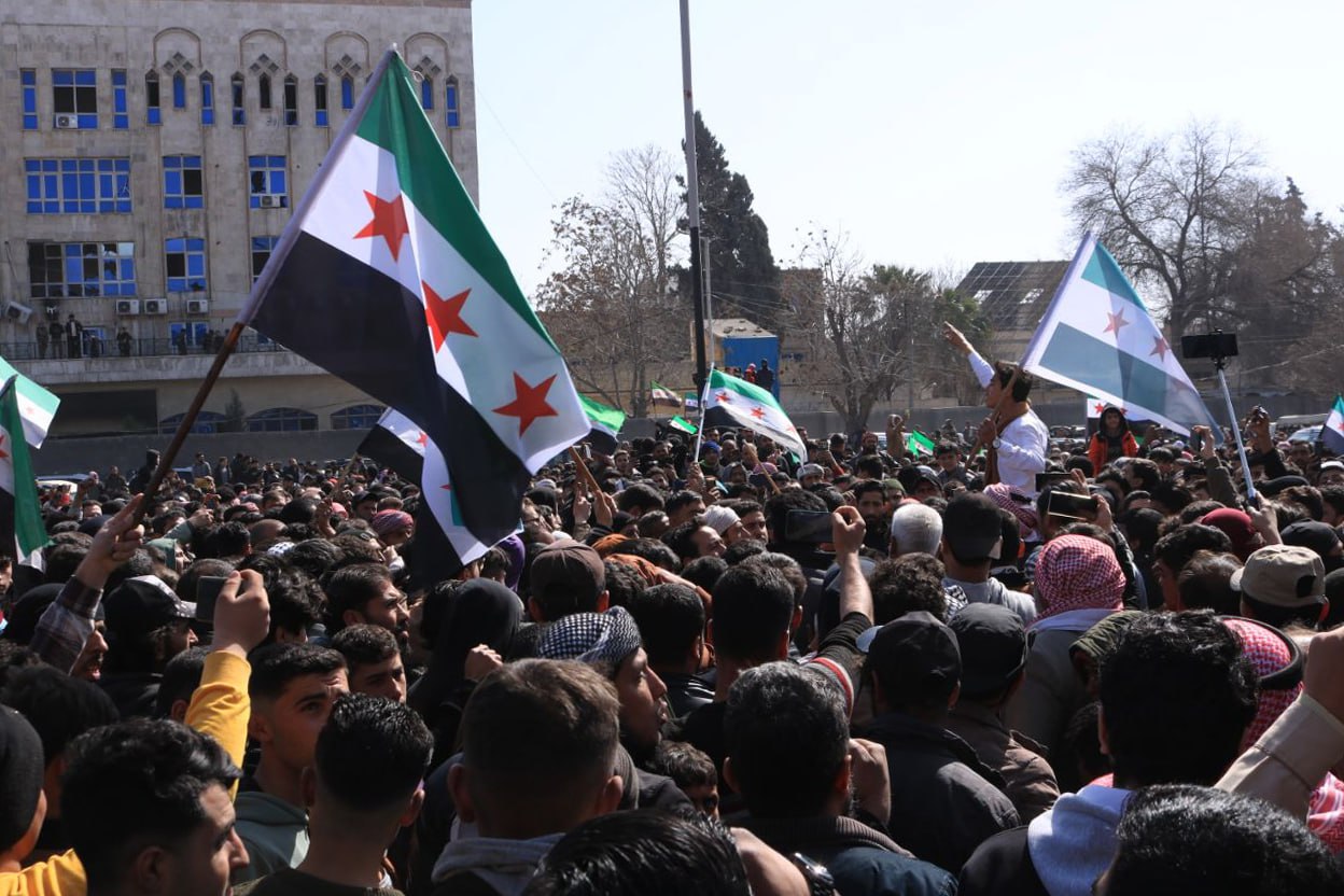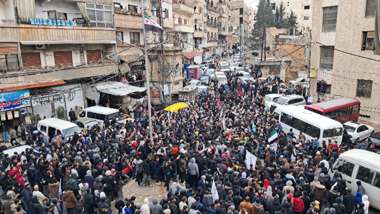 Alepo: Una concentración popular en la plaza Saadallah al-Jabri, en Alepo, en apoyo a los esfuerzos del Estado sirio para combatir los remanentes de las milicias de Assad y para afirmar la unidad del pueblo sirio en la lucha contra los armados ilegales.