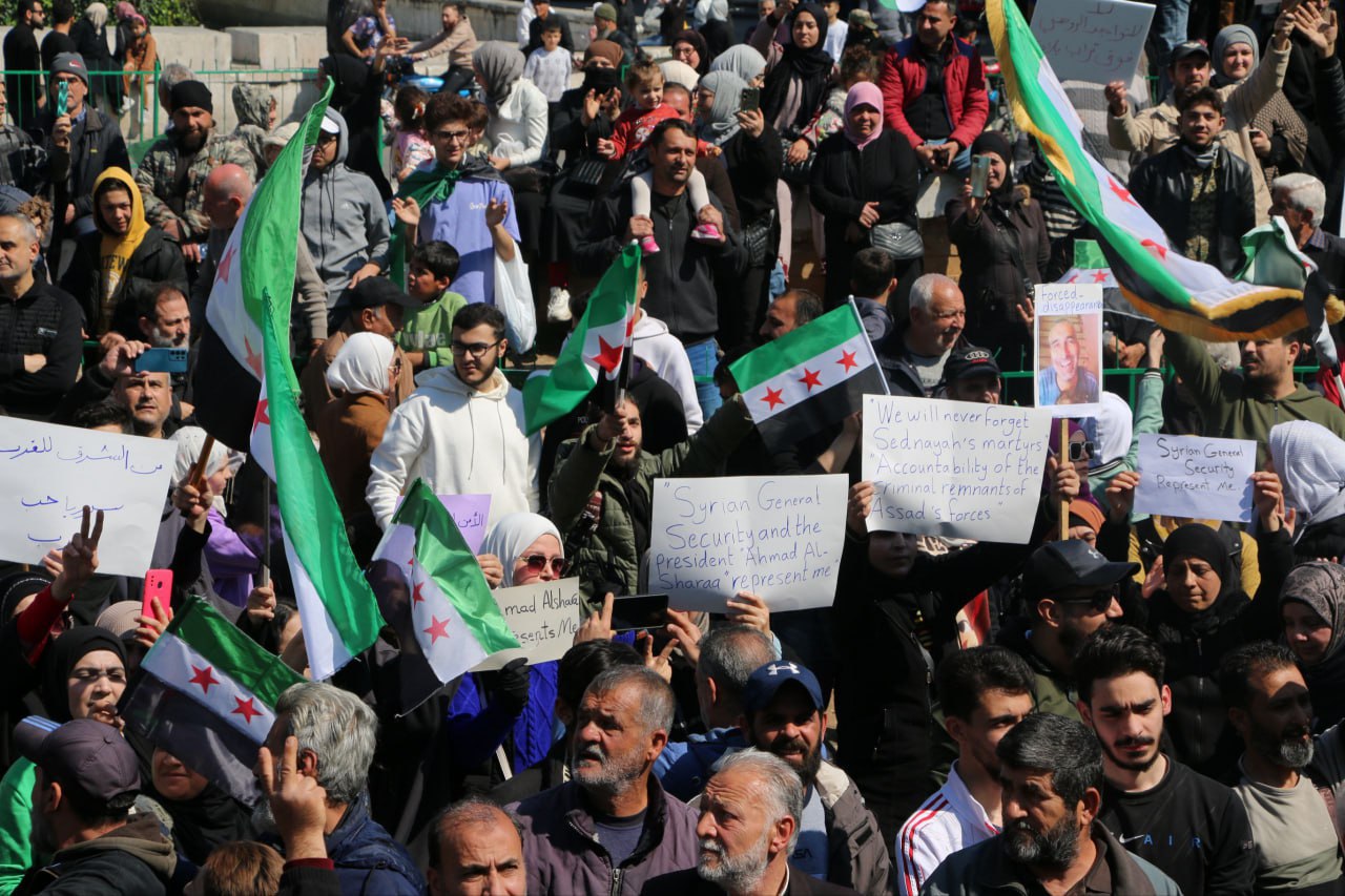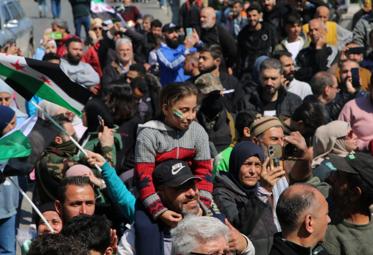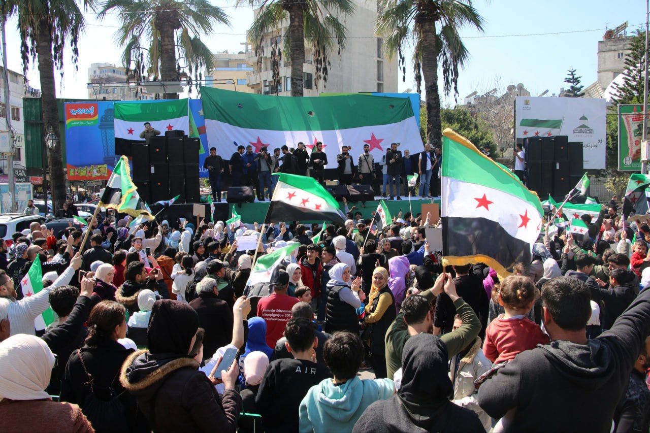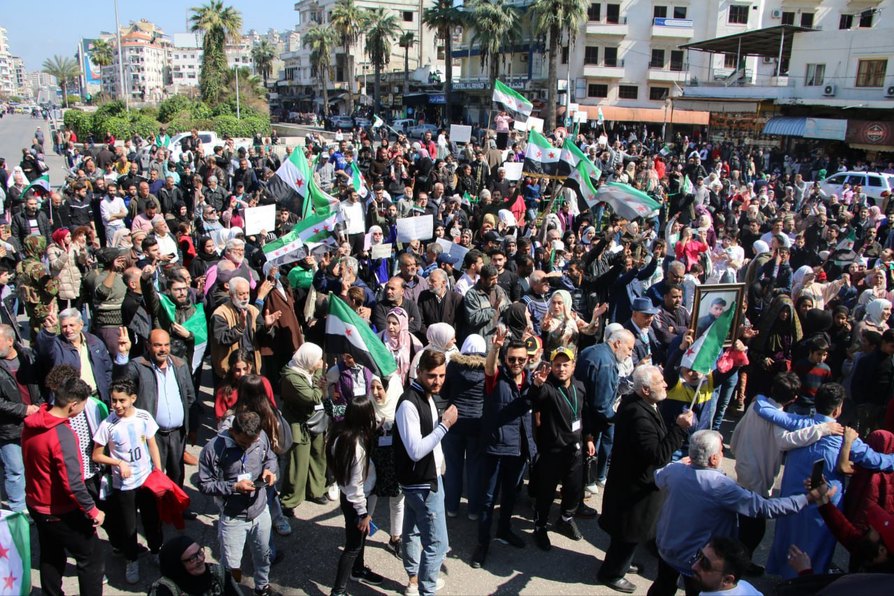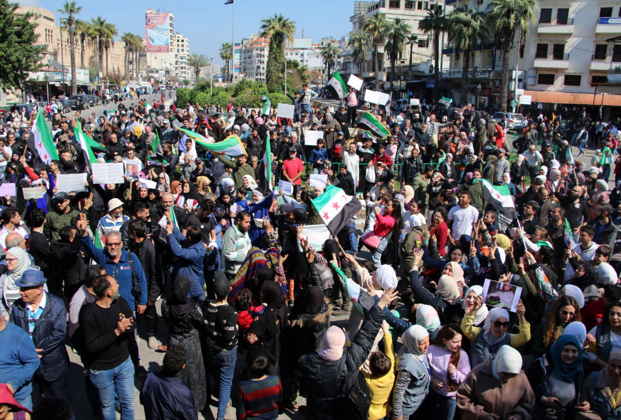 Latakia, 11 mar (SANA) Miles de personas se concentran en la ciudad de Latakia para reafirmar la unidad nacional y expresar su apoyo a los esfuerzos de restablecer la seguridad y estabilidad.