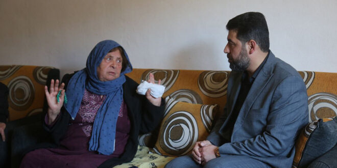 Latakia, 14 mar (SANA) El gobernador de Latakia Mohammed Othman, acompañado por el miembro del Comité Supremo para la Paz Civil, Hassan Soufan, visitó a la Sra. Um Ayman Rayhan, quien perdió a sus hijos en los recientes acontecimientos en la región costera, para ofrecerle sus condolencias y apoyarla en estas difíciles circunstancias.