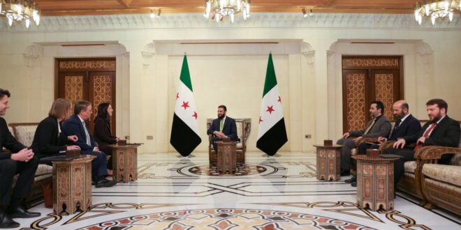 Damasco, 20 mar (SANA) El presidente sirio Ahmad Al-Shara, recibió a una delegación de la República Federal de Alemania, encabezada por la ministra de Asuntos Exteriores, Annalena Baerbock, y el vicepresidente del Parlamento Europeo, Armin Laschet.