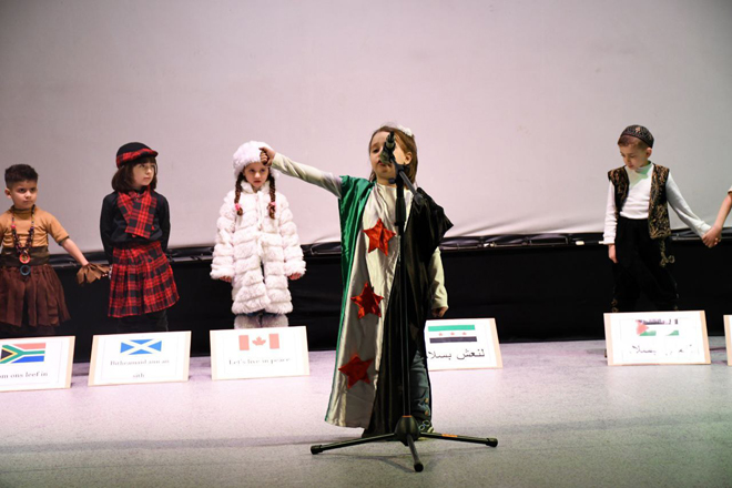 Las actividades, organizadas por la Dirección de Cultura de Homs en colaboración con la Fundación Al-Rowad para la Cooperación y el Desarrollo, incluyeron una exposición de dibujos y actuaciones teatrales inspiradas de la Revolución Siria desde sus inicios hasta su victoria.