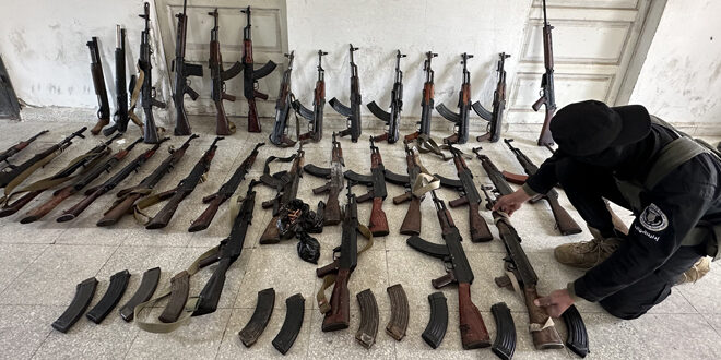 Latakia, 22 mar (SANA) La Dirección de Seguridad Pública recibió armas ligeras de dignatarios de los pueblos de Al-Budi y Al-Qalaye en la zona rural de Jableh, provincia de Latakia, afirmó el Ministerio del Interior.