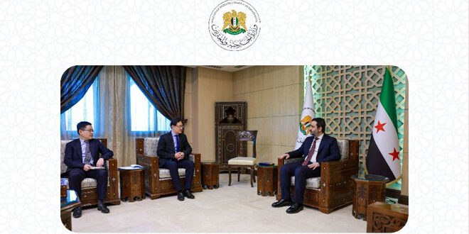Damasco, 27 mar (SANA) El ministro de Asuntos Exteriores y Expatriados, Asaad Al-Sheibani, recibió a una delegación de la República Popular China encabezada por el embajador chino en Siria, Shi Hongwei.