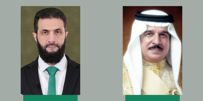 En su mensaje, el Rey de Bahréin expresó sus mejores deseos y sinceras felicitaciones al Presidente Al-Shara con motivo de Eid Al-Fitr, orando a Dios Todopoderoso para que le conceda salud y felicidad en esta bendita ocasión y otras similares, al hermano pueblo sirio progreso y prosperidad, y a las naciones árabe e islámica bondad y prosperidad.