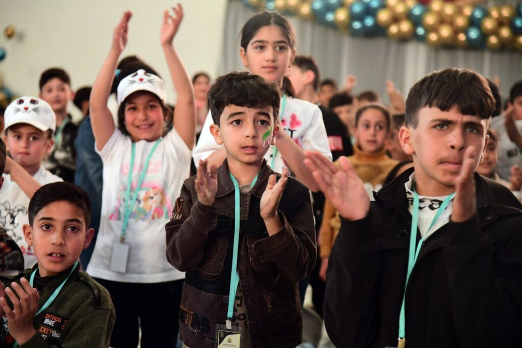 1.100 niños y niñas huérfanos de la provincia de Damasco-campo participaron en el evento, que incluyó bailes, concursos culturales y distribución de regalos.
