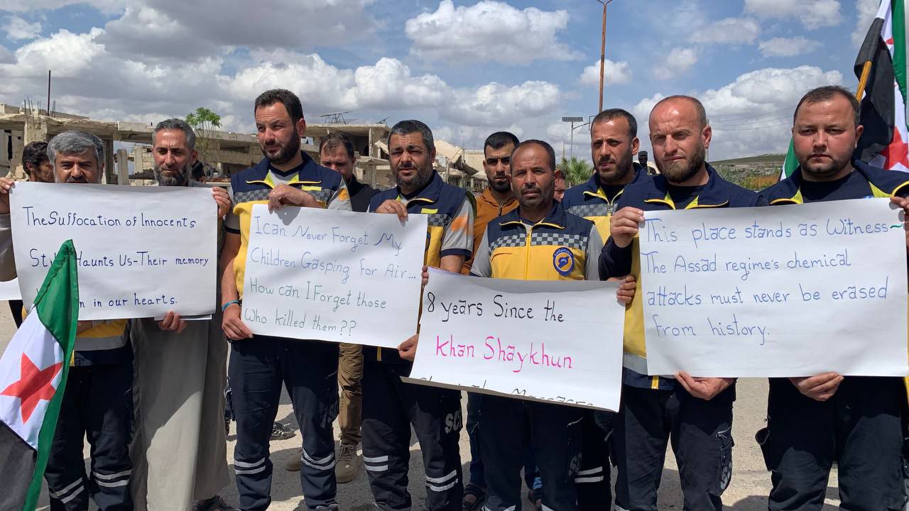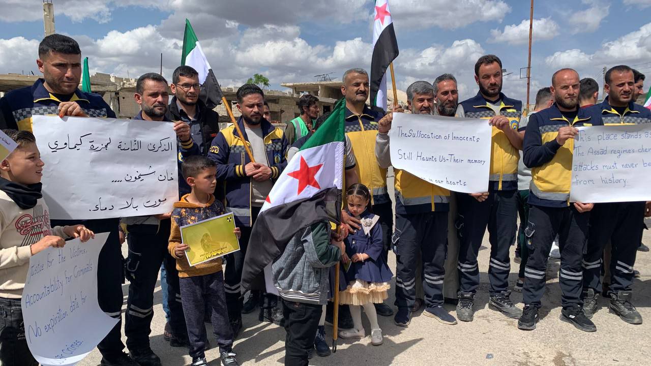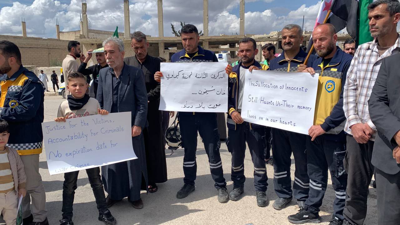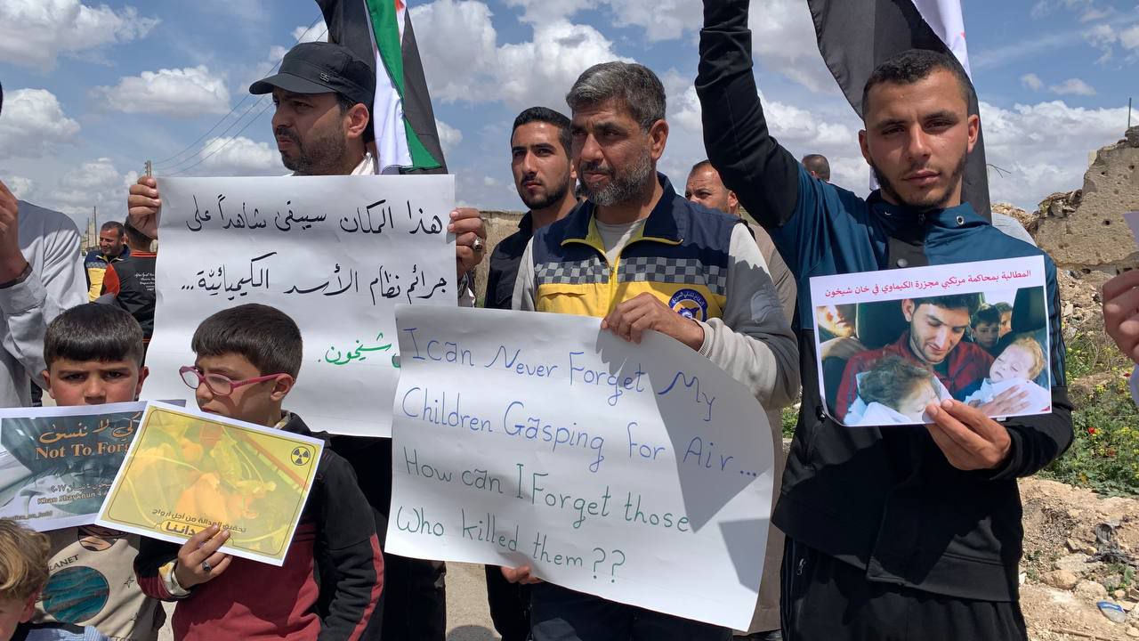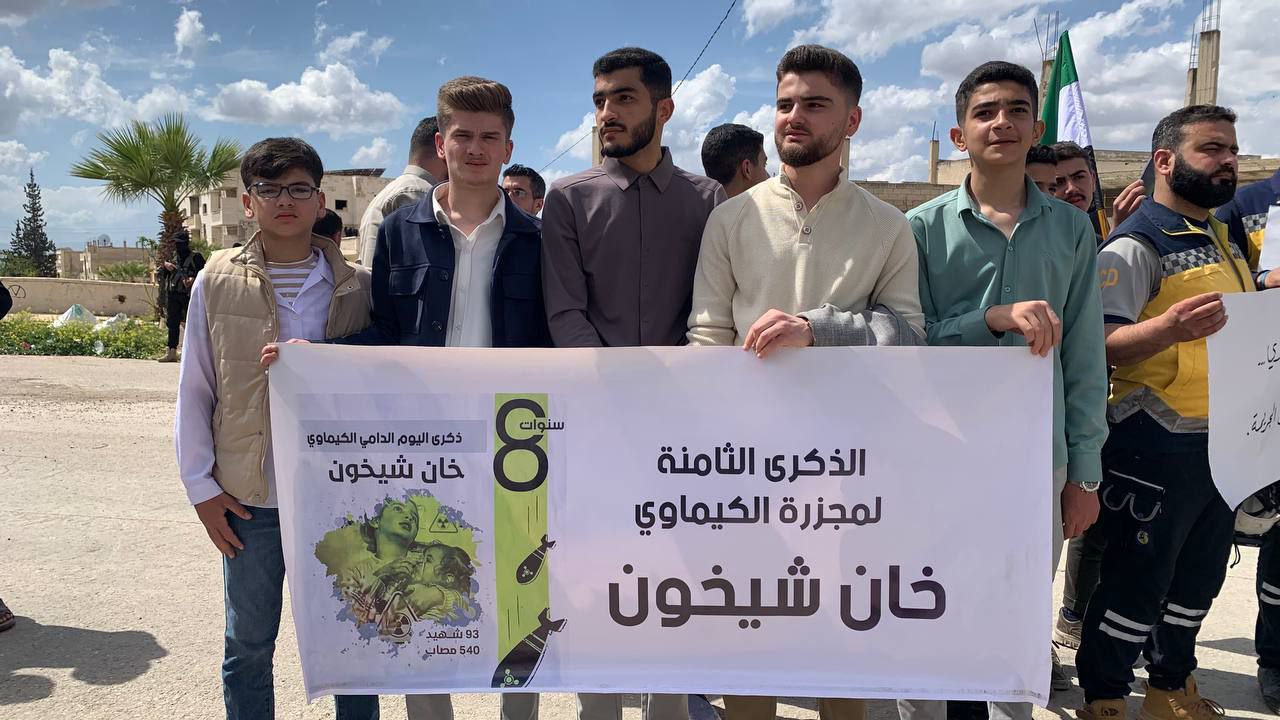 Idlib, 4 abr (SANA) Una concentración popular tuvo lugar hoy en la ciudad de Khan Shaikhoun, en la provincia septentrional siria de Idlib, en honor a las víctimas de la masacre generada por el ataque químico del depuesto régimen hace ocho años, y en la que decenas de personas perdieron la vida.