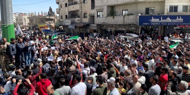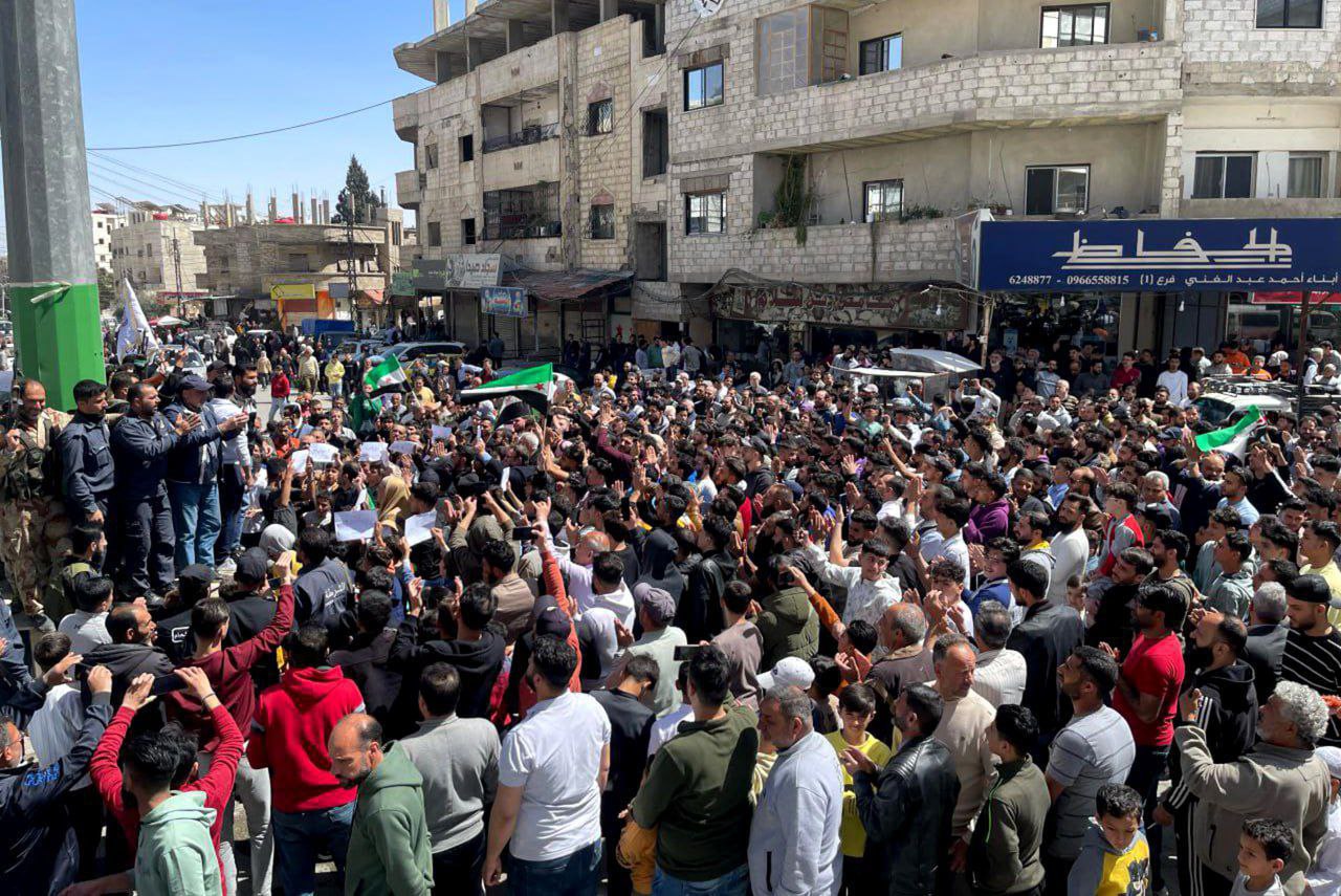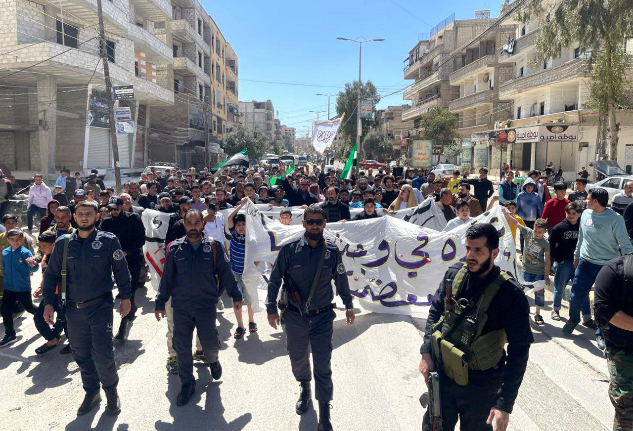 Damasco-campo, 4 abr (SANA) La ciudad de Moaddamieh ubicada al sudoeste de Damasco, la capital siria, fue testigo de una manifestación contra las agresiones israelíes.