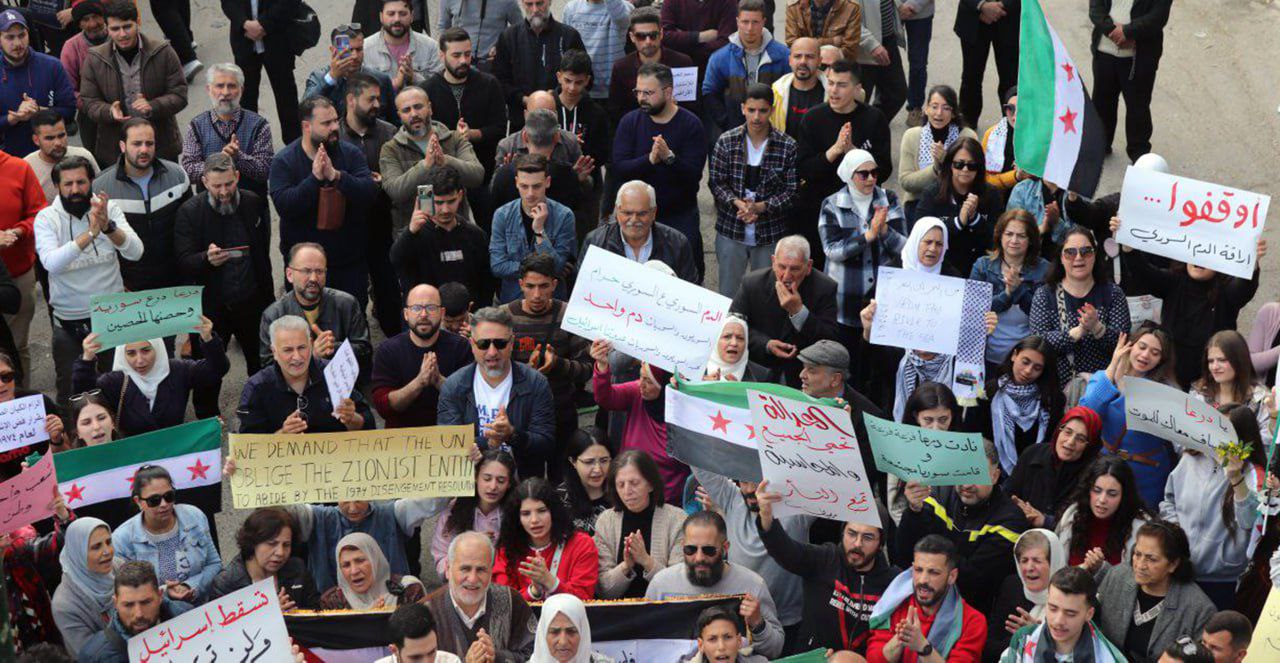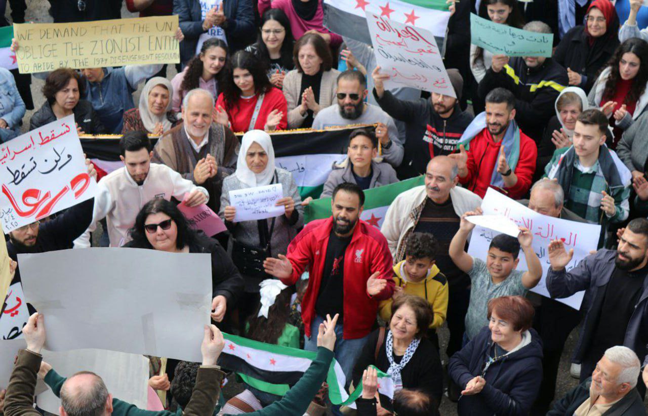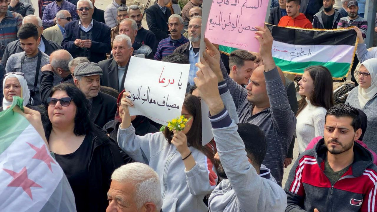 Los manifestantes expresaron su solidaridad con las familias de las víctimas caídas durante la reciente agresión israelí en la provincia sureña siria de Deraa.