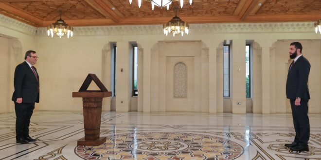 Damasco, 7 abr (SANA) El Gobernador del Banco Central de Siria, Abdul Qader Hassrieh, prestó juramento ante el Presidente de la República, Ahmed Al-Shara, asumiendo oficialmente sus funciones.