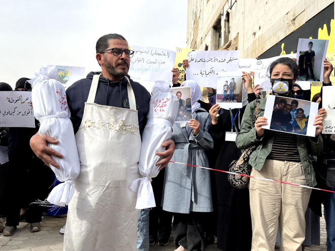 Damasco-campo, 7 abr (SANA) En el séptimo aniversario de la masacre química en Duma, cerca de Damasco, perpetrada por las fuerzas del depuesto régimen, que se cobró la vida de 43 civiles, incluidos varios niños y mujeres, miles de residentes de la ciudad y activistas de derechos humanos y periodistas se reunieron para conmemorar este crimen y sus víctimas.