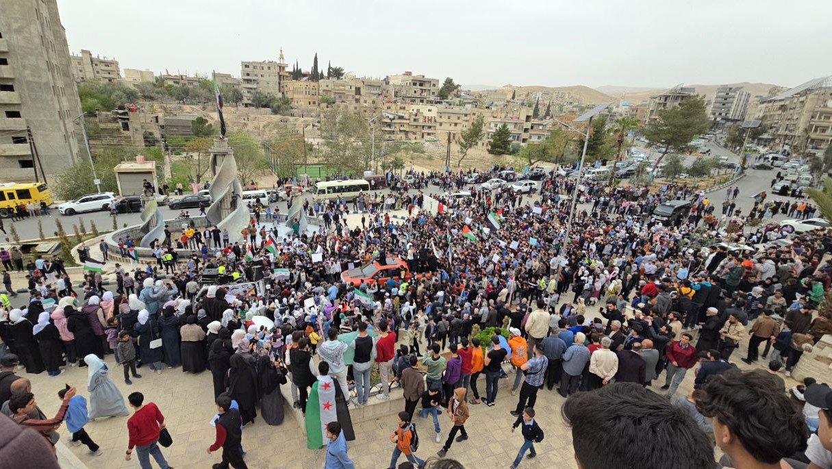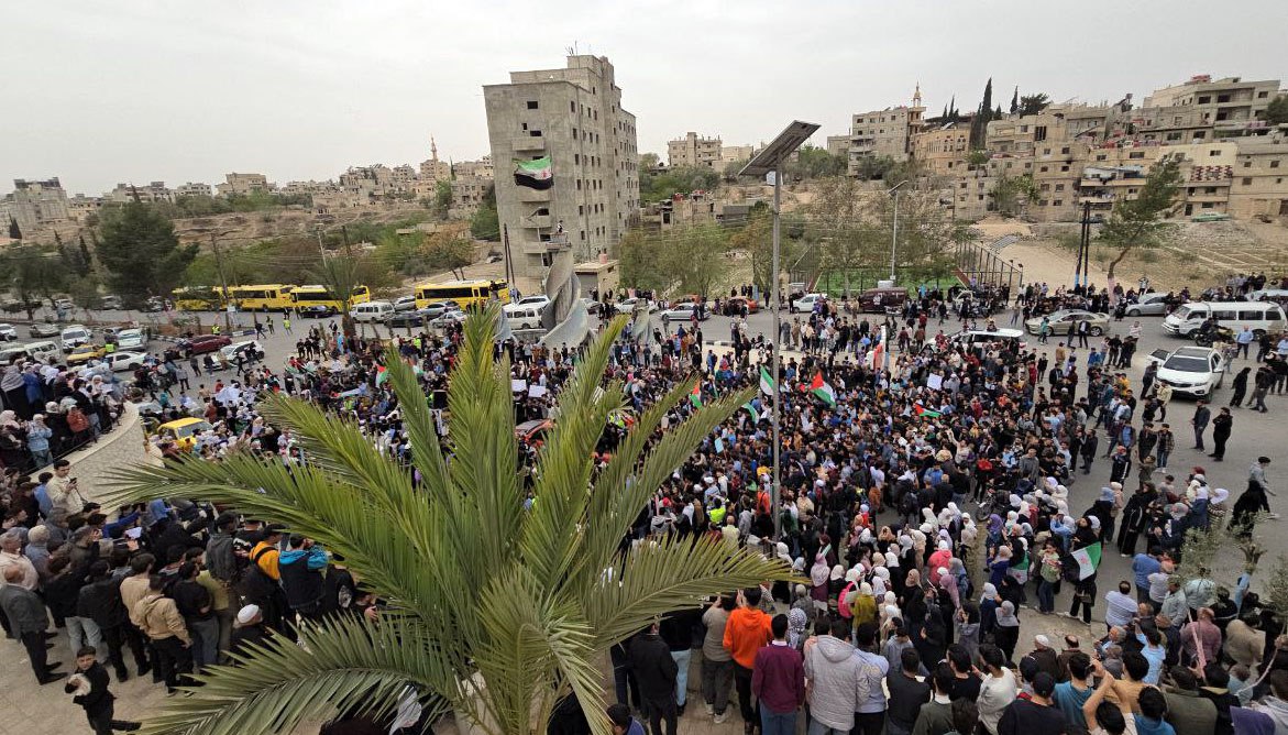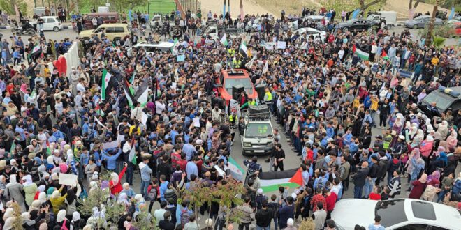 Damasco-campo (SANA) Los residentes de la ciudad de Al-Tal, al norte de Damasco, organizaron una manifestación popular en apoyo al pueblo de Gaza y en condena de la guerra genocida perpetrada por la ocupación israelí.