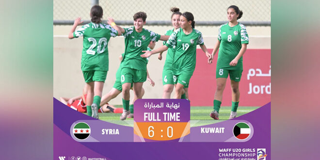 Amán, 8 abr (SANA) La selección juvenil femenina de fútbol de Siria derrotó a su rival kuwaití 6-0 en la segunda ronda de la quinta edición del Campeonato Femenino Sub-20 de Asia Occidental, que se disputa en Jordania.
