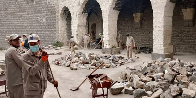 Homs, 10 abr (SANA) El Ayuntamiento de la ciudad de Homs en el centro de Siria, en cooperación con el Programa de las Naciones Unidas para el Desarrollo (UNDP), lanzó este jueves la campaña “Juntos, nos levantamos” para limpiar los mercados históricos de la ciudad.