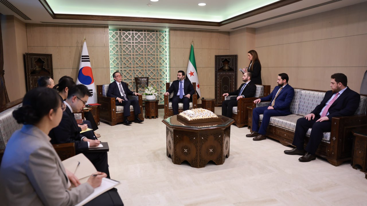 Damasco, 10 abr (SANA) El ministro de Asuntos Exteriores, Asaad al-Shaibani, recibió hoy en Damasco a una delegación de alto nivel de la República de Corea del Sur, encabezada por el ministro de Asuntos Exteriores, Cho Tae-yul, en un paso considerado como primero en la historia de las relaciones entre ambos países.