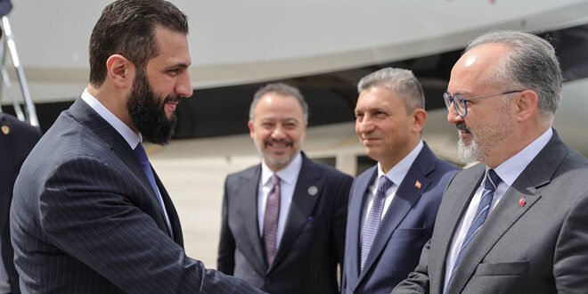 11/04/2025 Ankara, 11 abr (SANA) El presidente Ahmed Al-Sharaa llegó hoy a Turquía para participar en el Foro Diplomático de Antalya. 2025-04-11 samer