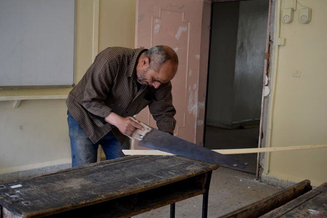 El director provincial de Educación, Ahmed Al-Madloush, explicó a SANA que los trabajos en la escuela Omar Ibn Al-Khattab incluyeron la reparación de puertas, el mantenimiento de la red eléctrica y las instalaciones de sanidad y la pintura de las aulas.