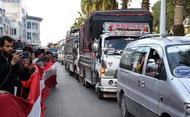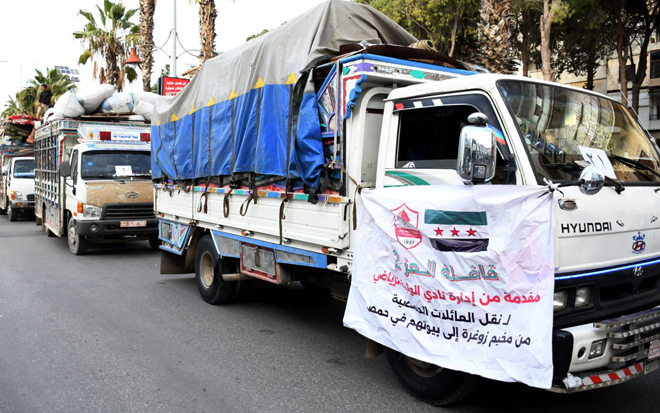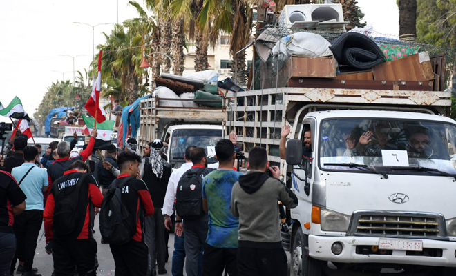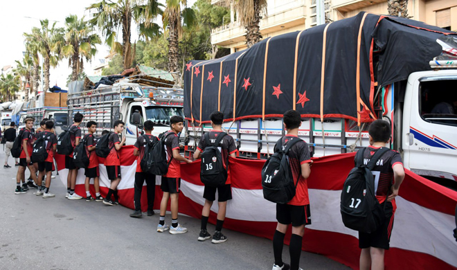 A su vez, el coordinador del convoy, Osama Al-Junaid, agradeció a la dirección del club Al-Wathba su gesto humanitario y la ayuda a los residentes que no pueden afrontar los costos de transporte para regresar a la ciudad de la que fueron desplazados por la fuerza durante el régimen anterior.