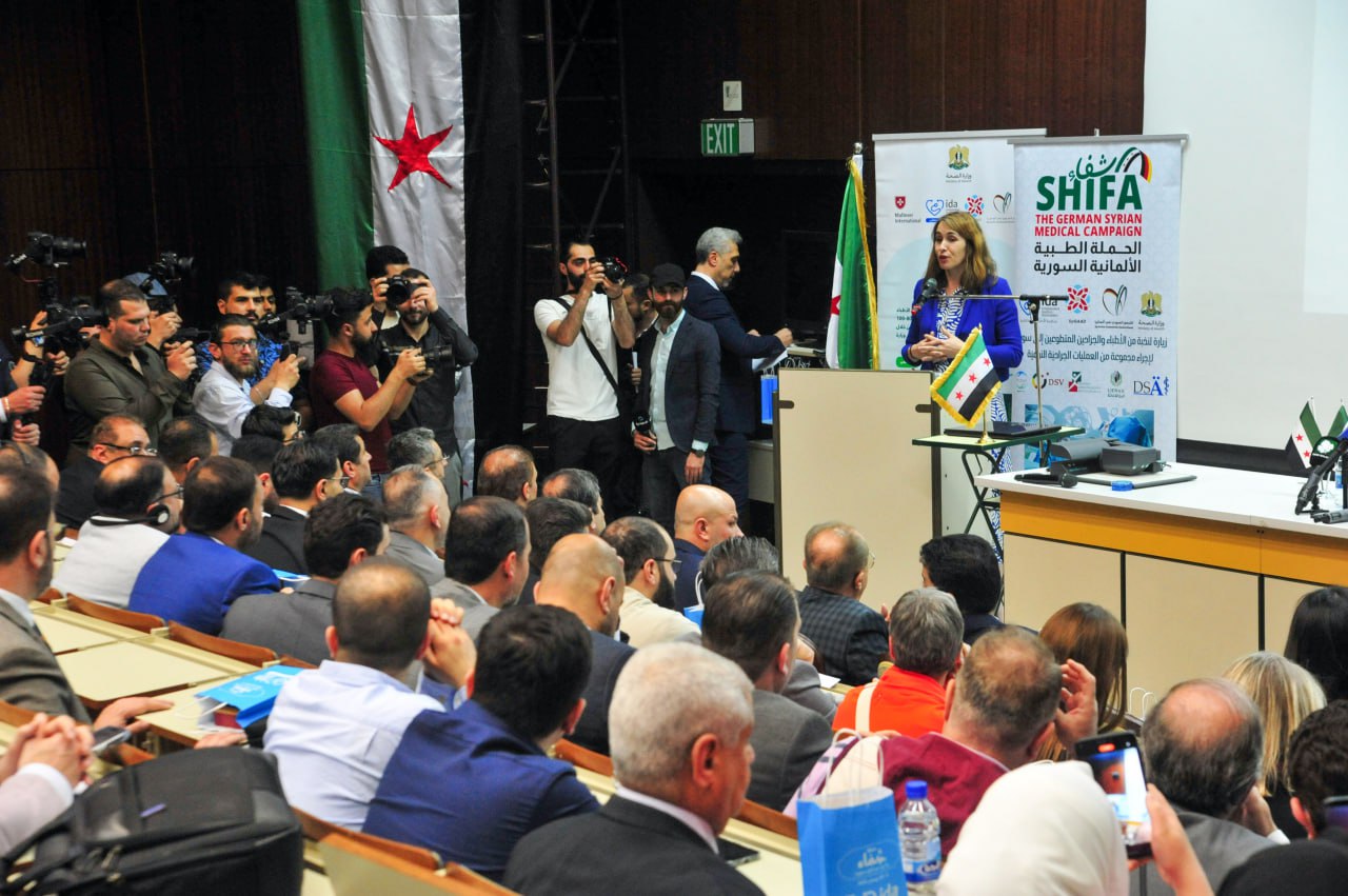 A su vez , la encargada de negocios de la Embajada de Alemania en Siria, Margaret Jacob, dijo que ha seguido la campaña desde su inicio y que estuvo informada de los desafíos que enfrentaron los cuadros durante su misión, que se centraron principalmente en la falta de electricidad y equipo médico.