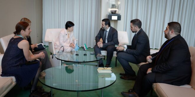 Nueva York, 29 abr (SANA) El canciller sirio Asaad Hassan Al-Shibani, sostuvo un encuentro en Nueva York, con Izumi Nakamitsu, la secretaria general adjunta de Asuntos de Desarme.