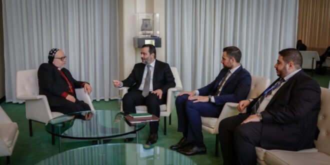 Nueva York, 30 abr (SANA) El ministro de Asuntos Exteriores y Expatriados de Siria, Asaad Al-Shaibani, se reunió en Nueva York con el arzobispo de la Arquidiócesis del Este de los Estados Unidos de la iglesia ortodoxa siríaca, su Eminencia Mor Jean Kawak.