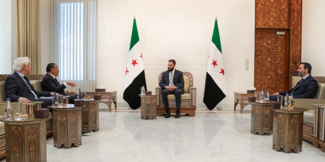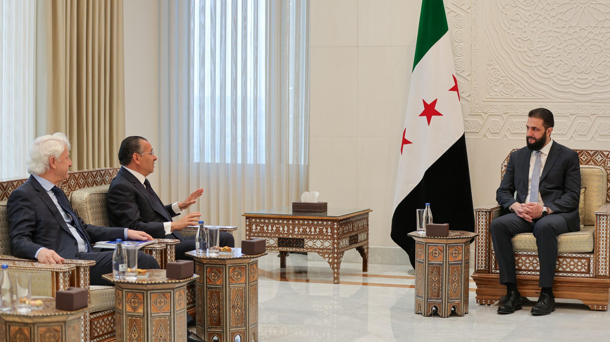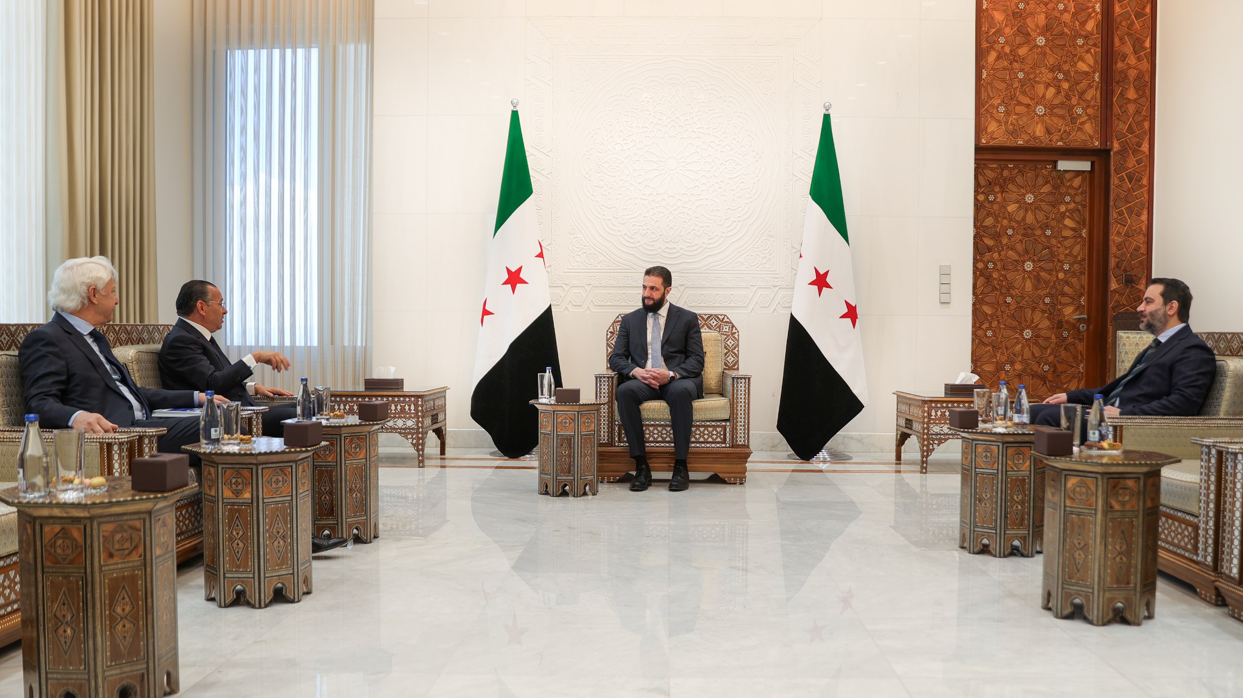 Damasco, 2 may (SANA) El presidente Ahmed Al-Shara, recibió en el Palacio del Pueblo, en Damasco, a Kamal Ghribi, el jefe del Grupo Holding de Inversiones GKSD y del Grupo de Hospitales San Donato, afiliado al Instituto Científico de Investigación, Inversión y Salud.