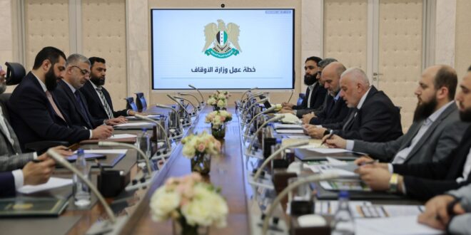 Damasco, 4 may (SANA) El presidente de la República, Ahmed Al-Shara, se reunió con el ministro de Asuntos Religiosos (Awqaf), Mohamed Abu Al-Khair Shukri, y con varios funcionarios del Ministerio.