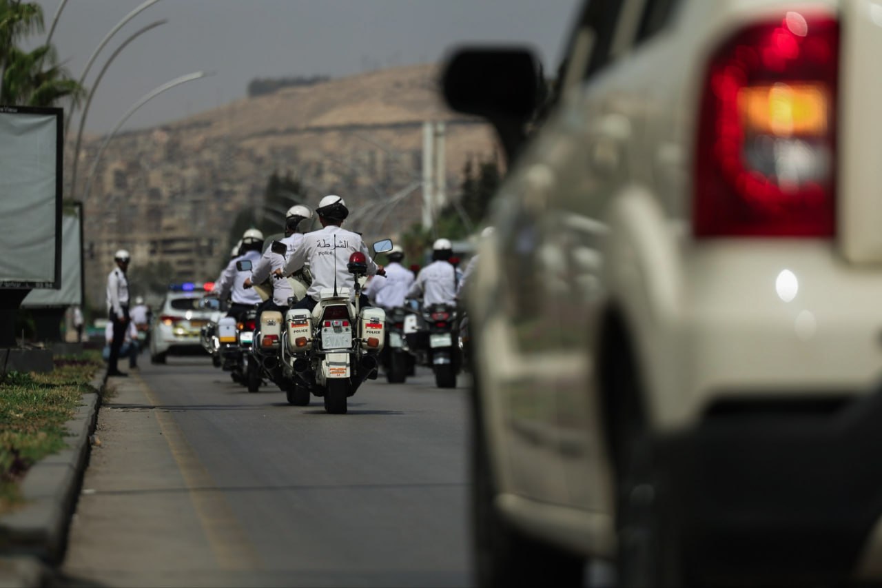 Damasco, 4 may (SANA) Con motivo del Día Mundial del Tráfico, unidades de la policía del Departamento de Tráfico de Damasco organizaron un desfile por las avenidas de la ciudad.