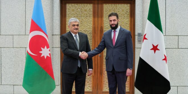 Damasco, 4 may (SANA) El presidente Ahmed Al-Shara recibió hoy en el Palacio del Pueblo, en Damasco, a una delegación de Azerbaiyán, encabezada por el viceprimer ministro, Samir Sharifov.
