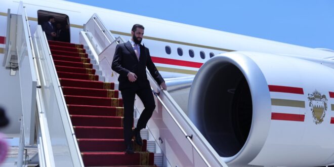 10/05/2025 Bahréin, 10 may (SANA) El presidente Ahmad Al-Shara llegó al Estado de Bahréin encabezando una delegación oficial. El presidente fue recibido por el jeque Hamad bin Nasser Al Khalifa, hijo del Rey de Bahréin. 2025-05-10 Esraa