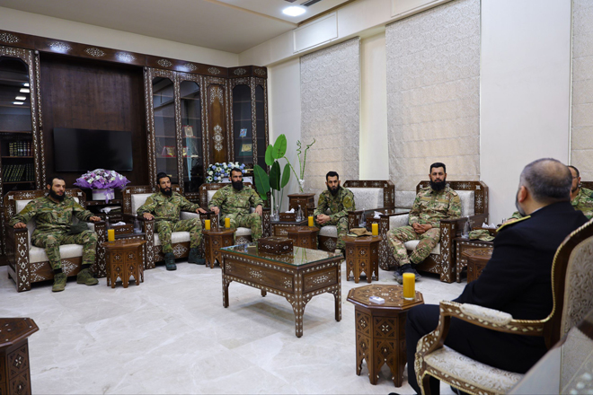 Damasco, 11 may (SANA) El ministro de Defensa, el mayor general, Marhaf Abu Qasra, recibió a varios líderes militares de la provincia sureña de Deraa en la sede del Ministerio de Defensa en Damasco.